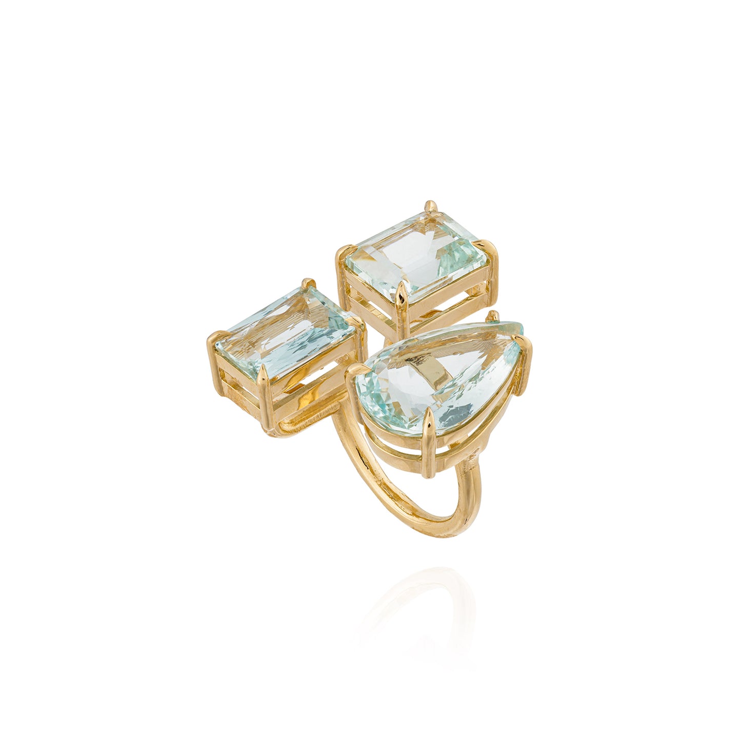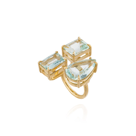 14K Yellow Gold Ring with Faceted Aquamarines (20 cts).