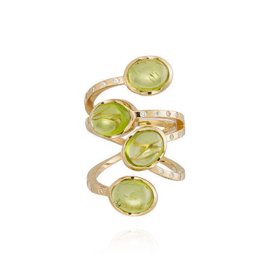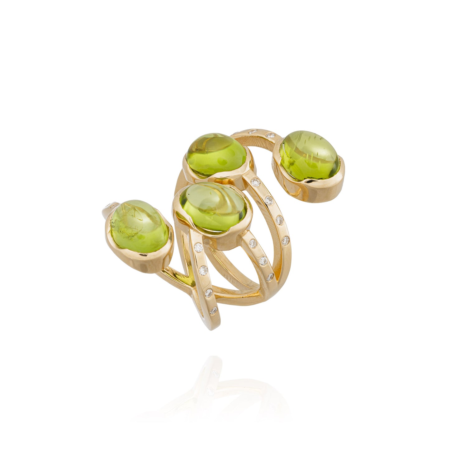 18K Yellow Gold Ring with Peridot (8.88 cts) and White Diamonds (0.26 cts).