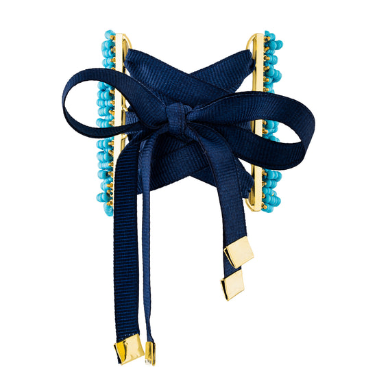 Bracelet has a ribbon closure on the back.