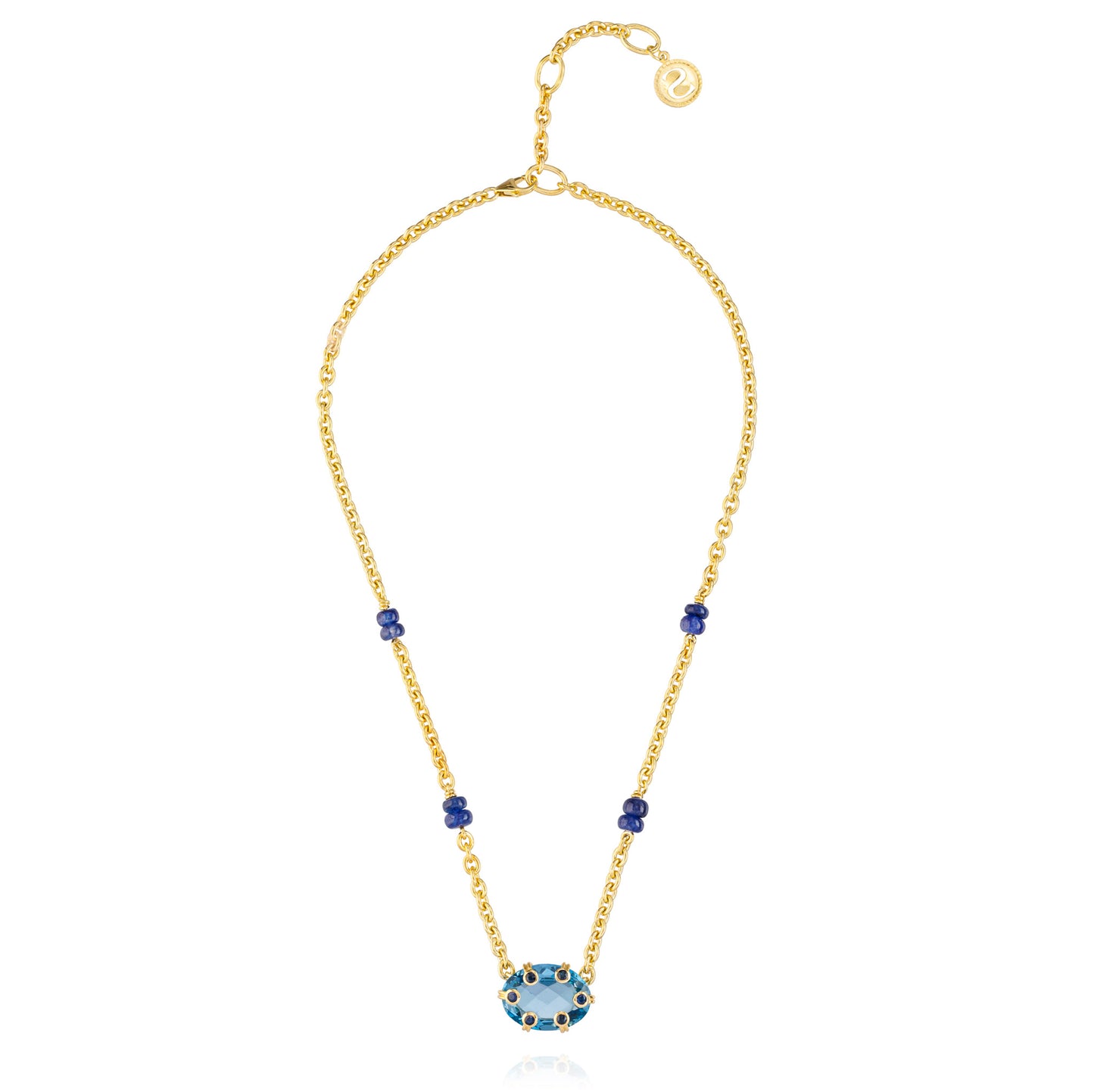 925 Silver Necklace Plated in 18K Yellow Gold with Faceted Blue Topaz (15.0 cts), and Blue Sapphire (10.45 cts).